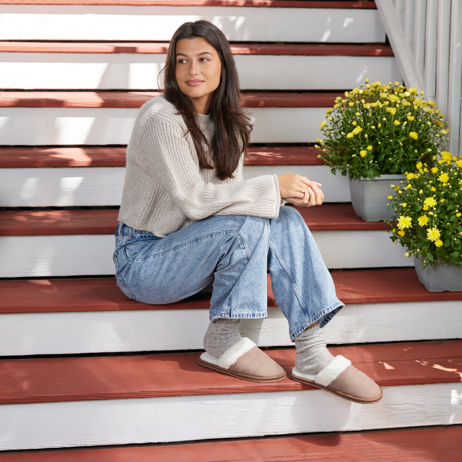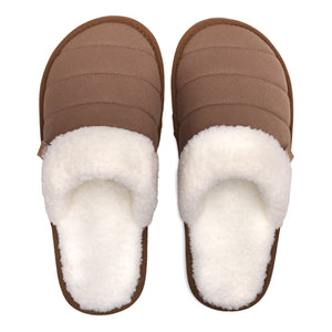 Our Aurora Mules are designed in partnership with the Cham Pa weaving co-op. These cozy, handmade slippers feature a quilted fabric, soft faux sherpa, and natural rubber and recycled rice husk soles. The fabric is sourced using direct trade principles in the weaving community of Phan Rang, Vietnam.